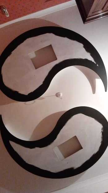 Usé una cartilla MDF para bloquear en el formaldehído y para que sea más fácil de pintar. Llené los agujeros de los tornillos de coche y luego pintado lo que era visible de la parte inferior del Ying Yang con pintura negro mate. Usé pintura de brillo blanco en los montantes de las piezas grandes y los bordes que hubo tanta reflexión como sea posible, también usé blanco brillo en las piezas de cubierta. He utilizado el negro por lo que hubo una clara diferencia entre las dos piezas. Cuando todo ha terminado y LED se instala, los agujeros para los tornillos en las piezas de cubierta deben lleno y luego pintados. Deje suficiente tiempo para esta etapa que debe permitir que cada capa de pintura se seque completamente antes de volver a pintar, lo mismo se aplica para el relleno siguió frotando hacia atrás y la pintura. Te aconsejo hacer tanta pintura como sea posible a nivel del suelo.
