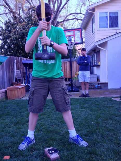 Como se puede ver en las fotos hemos comenzado en mi mesa de comedor con destornilladores y terminó en el jardín con martillos. Las últimas unidades no se significan para ser desmontado! Llamo a esta actividad "destructible de la unidad de disco".
