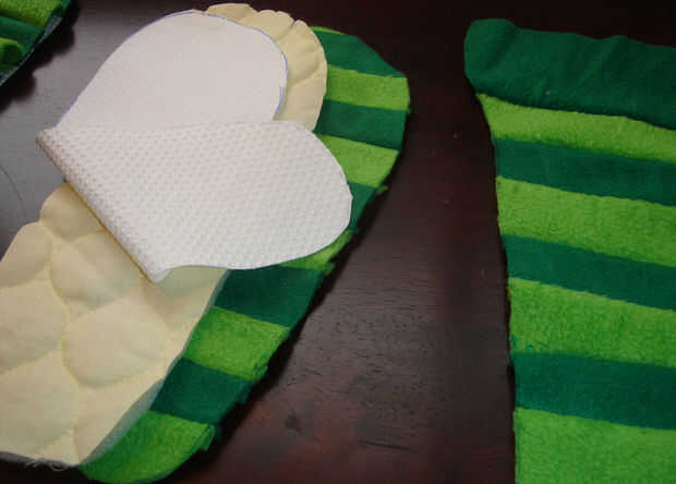 mi pobre esposa. Este fue su regalo de Navidad. pero en realidad les gusta! Usted puede hacer estas zapatillas con nada más plantillas, retazos de tela, cajas de cereales. todo lo que necesita para las herramientas son tijeras, pegamento de aerosol,