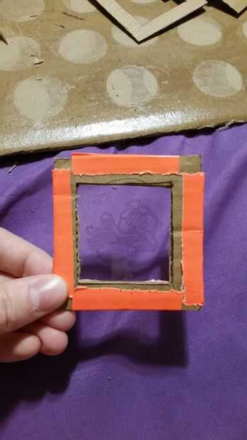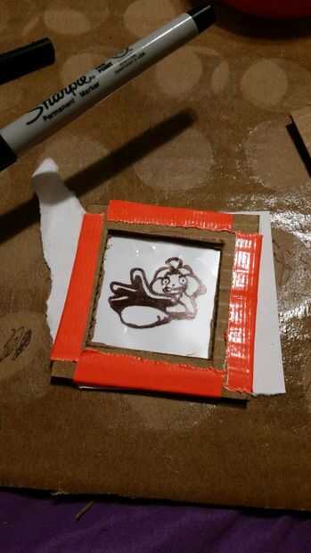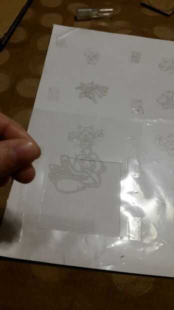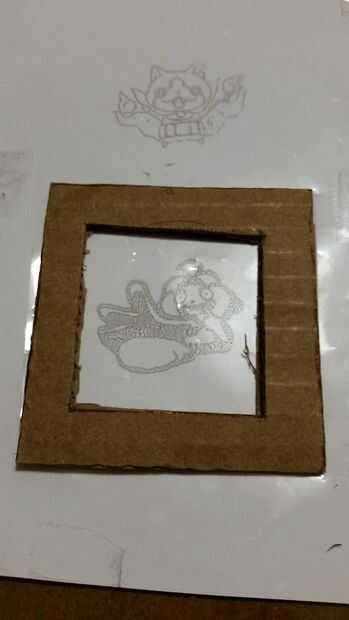 Pone un marco sobre un personaje. Utilice el exacto para cortar la película plástica a lo largo de los bordes externos del marco.