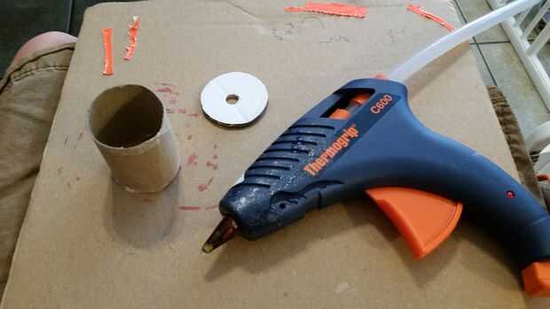 Calienta la pistola de pegamento y poner pegamento alrededor de la abertura de uno de los extremos del tubo. Presione el círculo en su lugar.