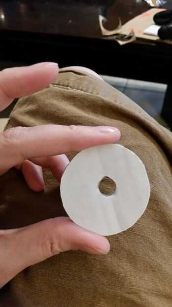 Coloque el círculo en el extremo del tubo de papel higiénico. Asegúrese de que esté lo suficientemente grande como para cubrir completamente la apertura.