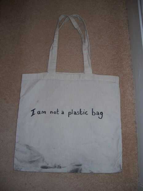 "Sainsbury de lanzado no soy una bolsa de plástico en 450 tiendas el 25 de abril. Debido a la abrumadora demanda stock todos ha ahora vendido." Oí en la frutería (sí, un lugar exótico para el chisme de moda), que Blackpool había una cola para comprar estas bolsas, con personas provenientes de Preston para comprarlos y un vistazo a ebay tiene bolsas de £5 a £7 y el diseñador original los quid por 50€. Según la BBC se hacen en China (baja grande en condiciones de explotación, a los trabajadores los derechos, por ejemplo. para tener un descanso, justo pago) y aquí (para una huella de carbono grandes). Tan solo una manera de conseguir una marca de lujo mucha prensa y falsas credenciales verdes. Ojalá la gente conseguiría un agarre.
