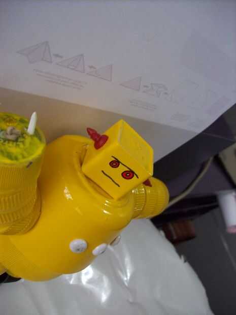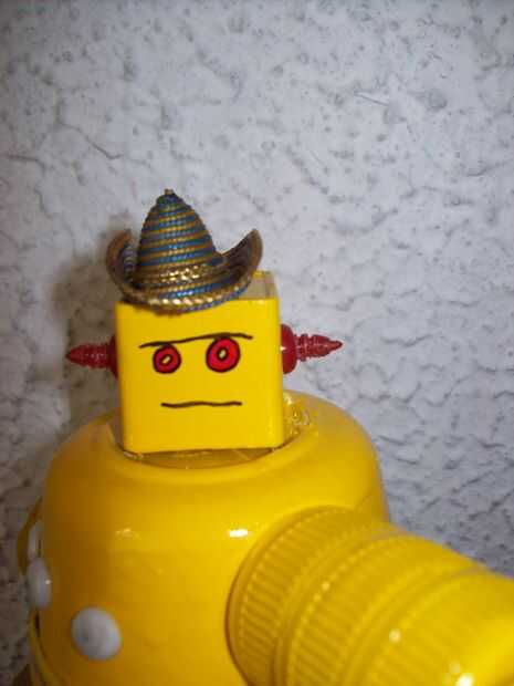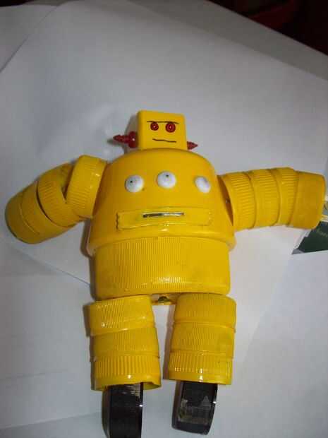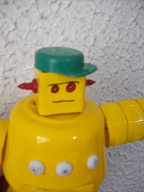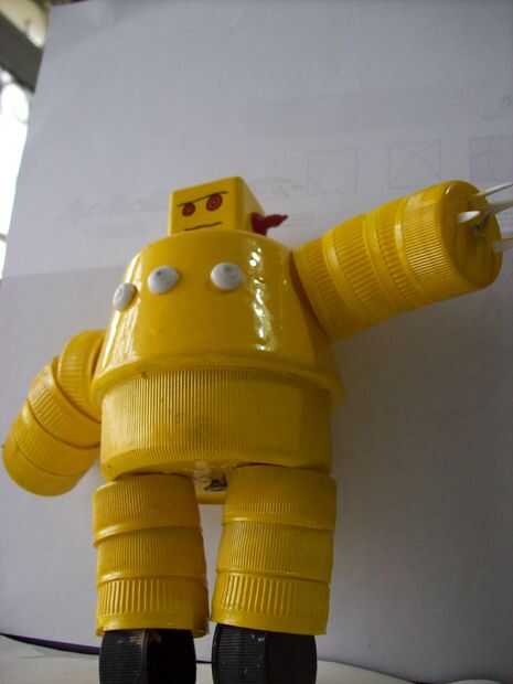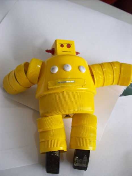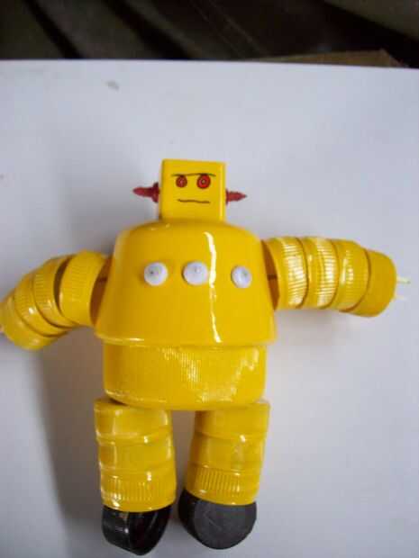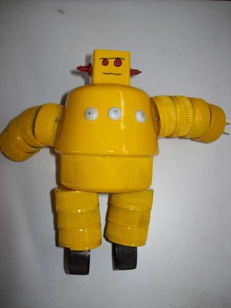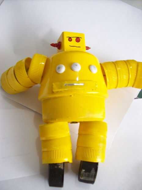 esta es mi versión del ROBOT amarilloMATERIALES:1. 1/16 madera contrachapada2. 1/4 tacos cuadrados3. cúter4. barata pintura acrílica5. control remoto coche, araña, carro ect. usted tiene la tripa6 pistola de pegamento caliente7. hojas de espuma8. neg
