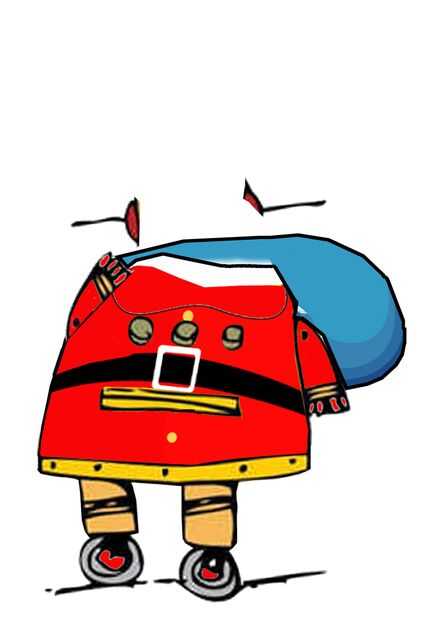 El saco de juguetes se ha basado en el hombro del Robot, y la mano derecha ha sido cortar y girar a la nueva posición.