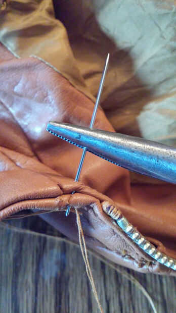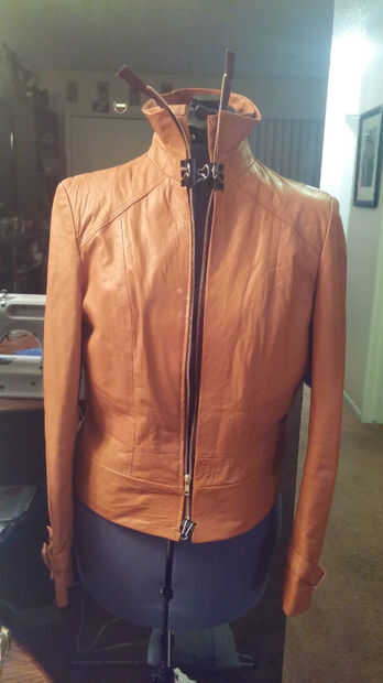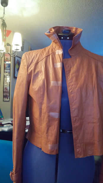 Pude conseguir algunos de los trabajos de puntada en mi máquina. Había quitado los botones y el corte de la sección del agujero de botón de la capa por lo que podía añadir una cremallera. ---¿Esto hay que hacer? No realmente. El doblete cubre la parte delantera, así que realmente no tenía que hacerlo. Esto viene totalmente a mi deseo de ser lo más preciso en mi creación como sea posible, haciendo mucho más trabajo para mí. --- También tuve que cortar el collar para que se ajuste el nuevo corte de la capa con una cremallera. He podido coser en la cremallera, en parte, pero después de romper 3 agujas menos de una hora que me di cuenta que estaba en el punto donde esto tuvo que hacerse a mano. Me encanta mi máquina pero tratando de coser a través de 4 capas de cuero y una cremallera capa es demasiado para una unidad no industriales. Las agujas de tapicería el maridito había salió y puso a trabajar.