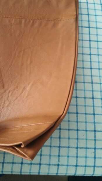 Cómo debería haber ido - debo haber hice los ojales a cada lado de la piel por separado, de esa manera podría haber usado mi característica de agujero de botón y habrían hecho mucho más fácil. Después, yo debo han cosido la solapa juntos pedazos derecho hacia fuera y top cosido para bloquear la forma en el lugar, terminando la parte inferior doblando en ambos lados y la parte superior para que coincida con la costura. Hice nada de esto, aprender de mi estupidez.