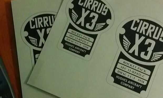 Dave utilizó sus habilidades de diseño gráfico para recrear la placa para el cohete e impresa en papel metálico. Sí, está pegado a la parte posterior de la mochila cohete, usted no puede verlo pero sé que está ahí. :)