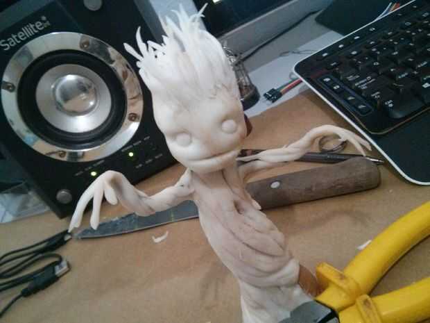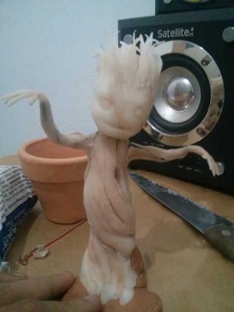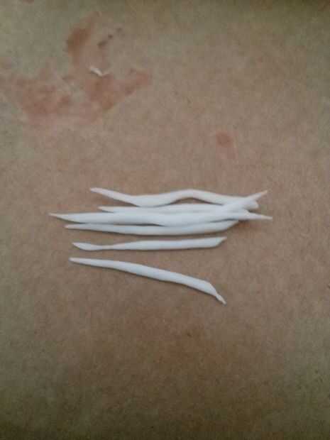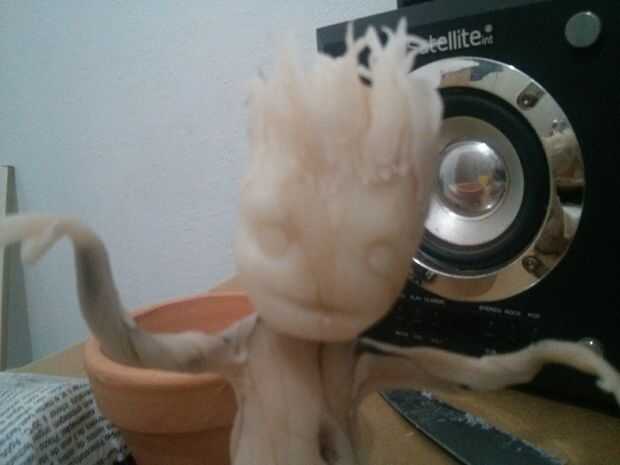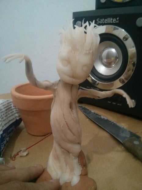 Hice una bola y fue modelado la cara con su dedo, hizo el agujero en el ojo con la punta de la escobilla que es redondeada, y luego lo hizo bien y poner pequeñas bolas en el agujero para ver como ojos, boca, hice un cm división incluso un palillo de dientes.