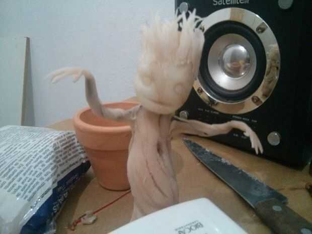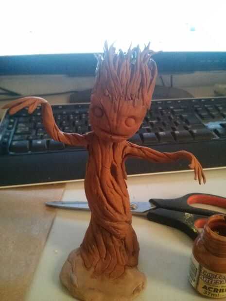 Pasé todo el primer ligero tinta marrón sobre la pieza esperado seco y utilizar la parte de color chocolate que es un poco más oscura en vano de pintura para simular la parte oscura del tronco del árbol y después con la tinta marrón normal corregir posibles desperfectos, pintar los ojos y la boca con el color de chocolate , para dar el punto culminante.