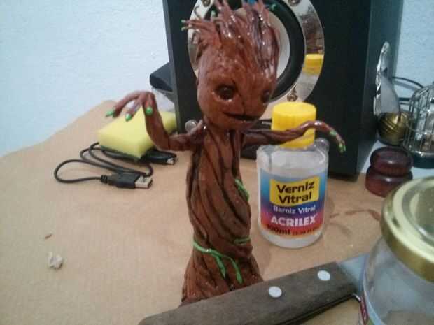 Después de todo ya montado y pintado, pasamos el barniz acrílico para proteger el poder y dejar la pieza con un brillo hermoso, que parte es simple, si en caso de tener un cepillo más grande un poco puede hacer su vida un poco: D.