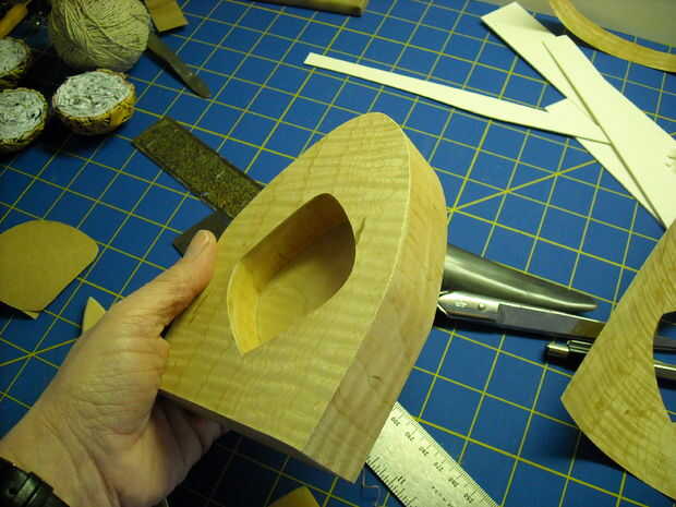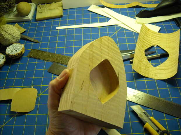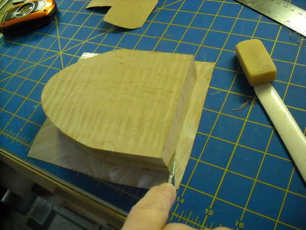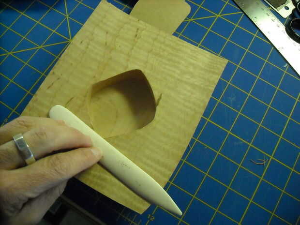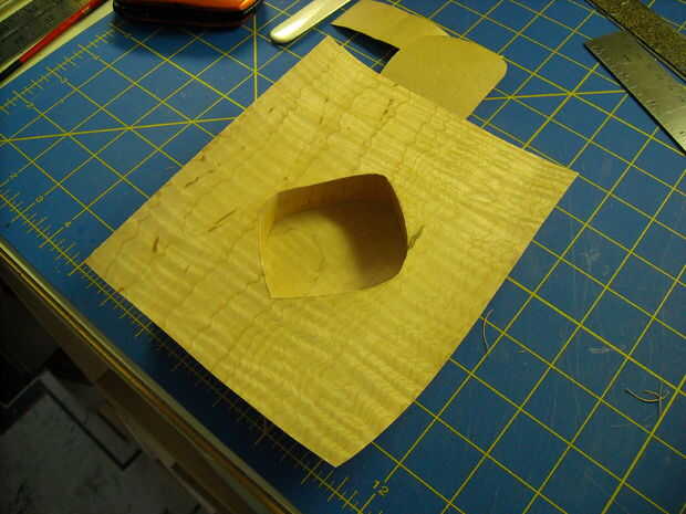 I cepillado pegamento en la parte posterior de la chapa, alineado con la abertura, bruñido en su lugar, luego recortado y lijar todo.