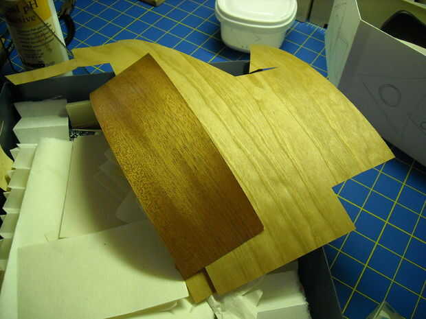 Chapa de madera - usar un producto Lenderink (http://www.woodveneers.net/paperwood.html) llamado papel Paperwood o de madera. Es una delgada chapa de micro