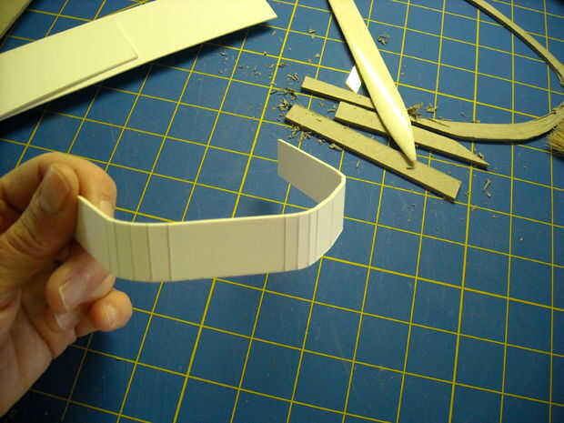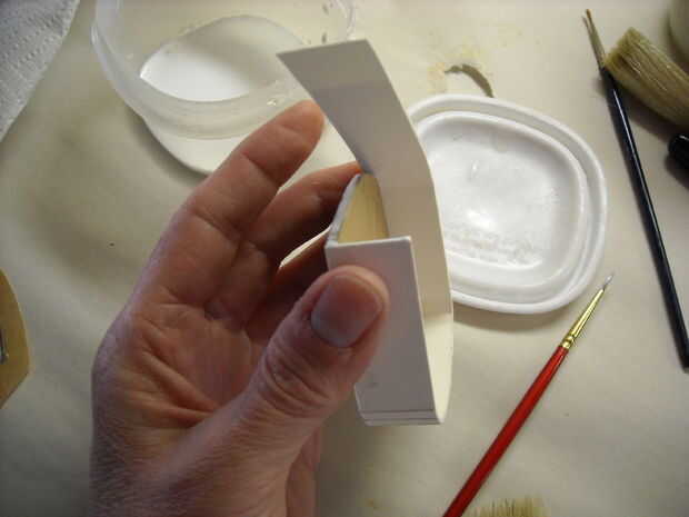 Una vez que esta parte ha sido enchapada puedo crear las paredes. Para ello, tomo la base de contrachapado y a lo largo de una pieza de Patronato del Museo para tener una idea de su circunferencia rodar. Luego corté la tira de junta con el grano para que el Patronato del Museo de "curvas" fácilmente. Cualquier lugar donde el las vueltas son apretadas corté unas líneas de puntuación para facilitarles. Luego seque el ajuste y ajustar según sea necesario. Luego cepille en el pegamento, unir las piezas y luego apoyo hasta seco.