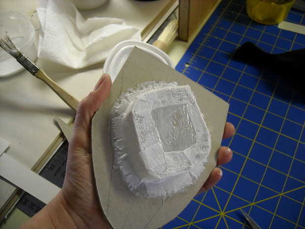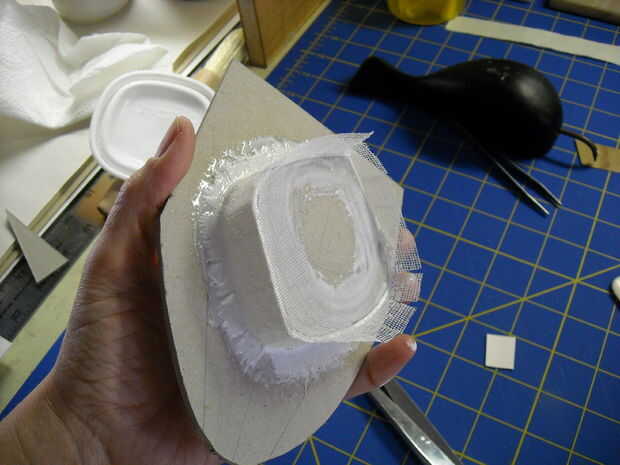 Pegamento blanco es todo lo que uso para este paso. Es un empalme, sin embargo y por lo tanto no demasiado fuerte, para que te refuerce todas las juntas interiores con 1 pulgadas de ancho tiras de la tarletan. Yo uso una tira para reforzar la pared de la cámara de la placa frontal y luego otra tira para reforzar el piso de la cámara.