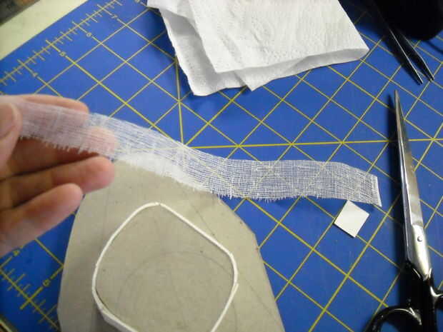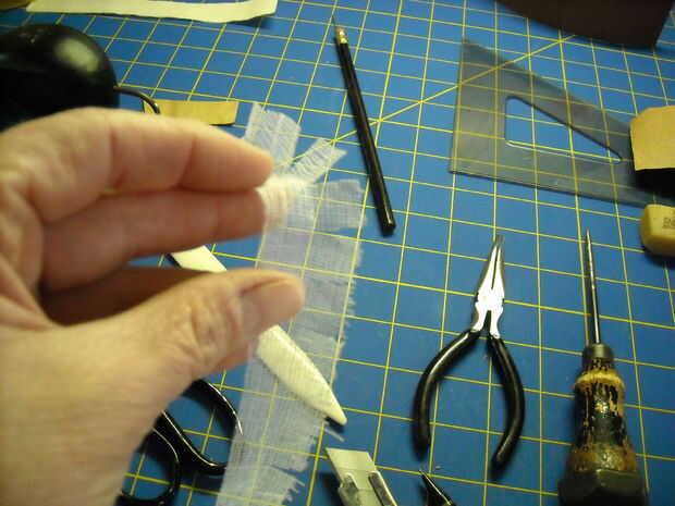 Tarletan es producto de cañamazo almidonado mencionado en la lista de materiales y funciona muy bien para reforzar las articulaciones. Supongo que se puede utilizar pegamento caliente y pegamento blanco es flexible después de que esté seco y porque el papel siempre se "mueve" en relación con la humedad, no uso pegamento caliente para mi trabajo.