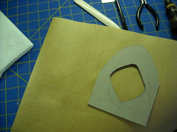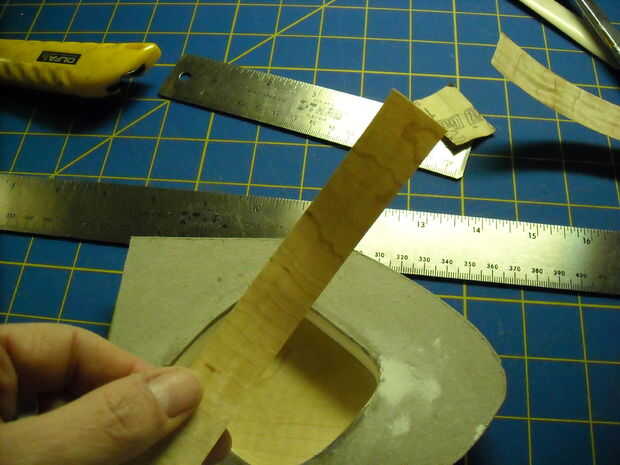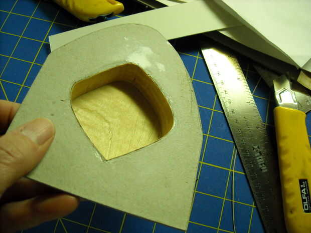 Antes que unir las dos piezas que voy a trazar la placa frontal en el la parte trasera de una pieza de chapa de madera. Así voy a tener una plantilla exacta de la forma de la zona ahuecada y más adelante será mucho más fácil para el frente del trabajo de la chapa.