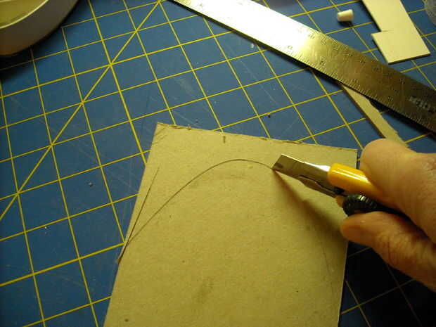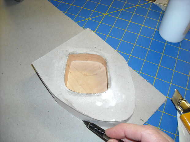 Luego coloca la pieza boca arriba en una hoja de Consejo de encuadernador, rastrear la forma, corte y y pegan con todo. Me olvidaba disparar esta próxima parte, pero después de pegado, puse la cara hacia arriba sobre la superficie de trabajo y había cargado el pedazo entero abajo al menos media hora.