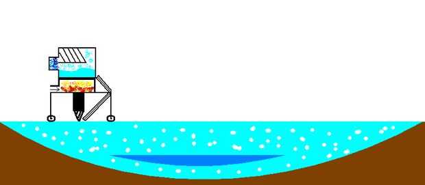 El calor derrite el hielo, que se ejecuta a través de una turbina para generar electricidad. Esto podría ither sólo utilizarse comercialmente, o como un calentador eléctrico para ayudar a derretir el hielo. Además, el mehtnae que se libera por la perforación será quemada para ayudar a derretir el hielo... en fin, poca madera, etc. tienen que ser utilizados.