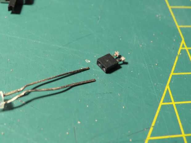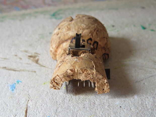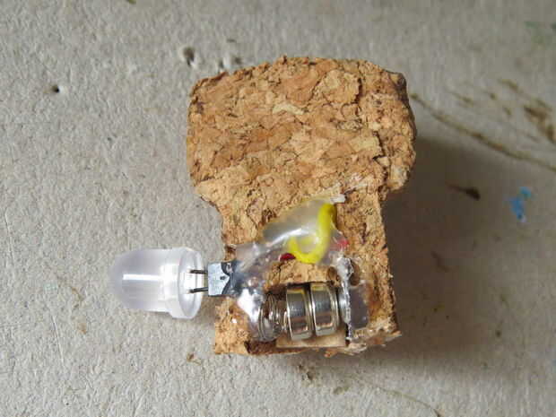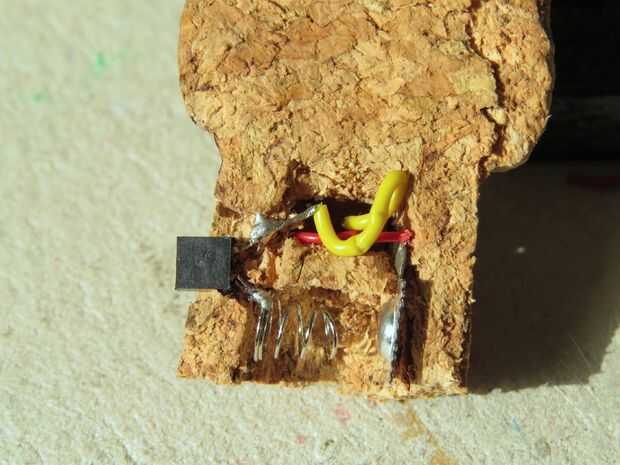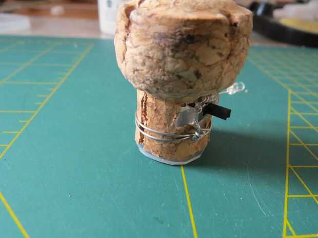 Todos los componentes de la soldadura como se muestra en el diagrama y pegar en lugar en el corcho con pegamento caliente.