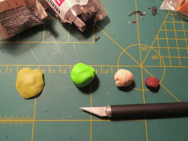 Si estás usando Sculpey, el color no importa mucho, como fácilmente puede pintar sobre él más adelante. de todos modos, mezclé verde claro, beige y marrón oscuro para conseguir un color de color caqui verdoso.