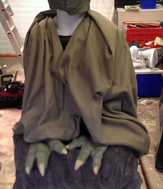 ¡ Todavía no he hice el manto. Viene pronto, probablemente esta noche! Busqué algunos patrones para hacer capas pero al final creo que voy a cubrir al tejido sobre el maniquí, marcar los agujeros de mi brazo y recorto. De la misma idea con las mangas - sólo cuelgue el material de mis brazos, márquelo y recórtalo.