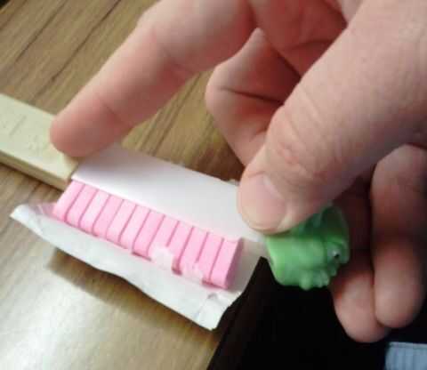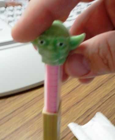 Curiosamente, con garganta de Yoda completamente extendida, las pastillas de un paquete completo no perfectamente resbalará en. Puesto que no sería ninguna diversión para comer ahora un diábolo, fácilmente puede inclinar detrás cabeza de Yoda un poco para un perdigón pasado. Línea de Yoda y deslice las pelotillas en su garganta.