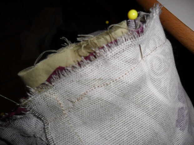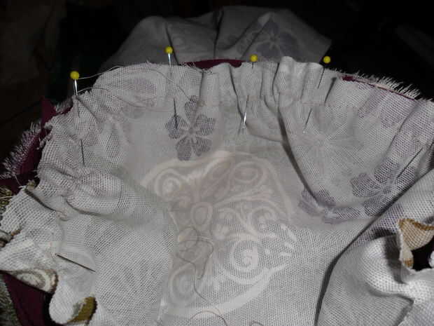 Vas a recoger el círculo inferior por lo que puede caber en el tubo. Vas a tener que pin que. Hacia su lado derecho del tubo en y tienen su pieza inferior se reunieron. En este punto vas a decidir donde desea su correa en su bolso. Yo generalmente mina estar alineado con la costura principal de la bolsa. Vas a prender la correa en el lugar que está dentro. Esto es para que cuando vaya a darle la vuelta la correa en anclado en la parte inferior. PIN todo en su lugar y cosa tan cerca de la tubería/original de tuberías puntada como puedas para obtener una costura bonita al final.