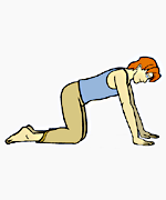 Paso 1: De pie sobre sus manos y rodillas. Estirar los codos y relajar la parte superior entre los omóplatos, que da la sensación que los brazos caen de los hombros.