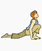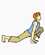 Paso 7: Inhalando, estire hacia adelante y detrás de la curva. Mantenga los brazos rectos.
