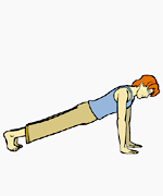 Paso 6: Retención de la respiración, baje las rodillas, el pecho y la frente, manteniendo las caderas y los dedos encrespados bajo.