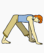 Paso 3: Ponga su mano izquierda al lado de tu pie y tu peso con la espalda baja y en los talones del pie en frente. Levante la parte superior de su cuerpo hasta que la espalda esté recta. Puede reconocer esto por una ranura en el centro de la espalda baja. El pie derecho (el que está en la parte posterior) se apoya en el piso.