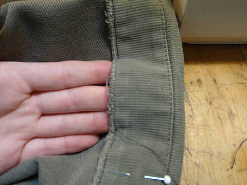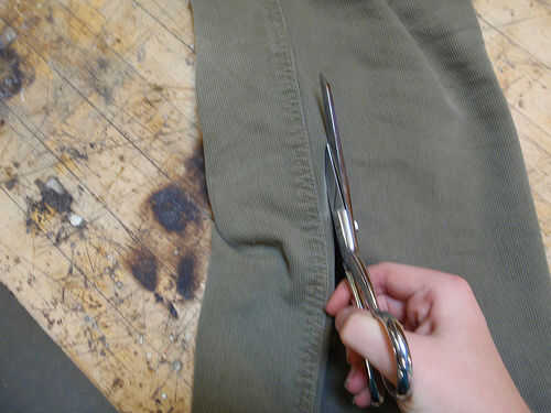 Para crear el lazo, utilizar el mismo principio como la correa. Usé la doble costura de la otra pierna del pantalón porque me gusta el aspecto, y es muy fuerte.