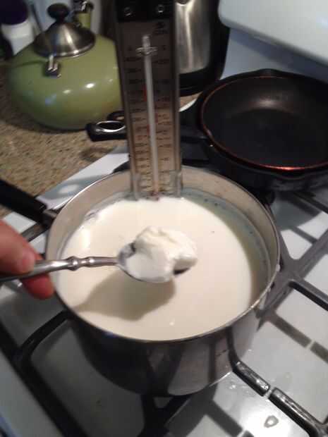 1. Abrir el nuevo contenedor de almacén comprado yogur y sacar una gran cucharada colmada y revuelva la leche muy bien. No sólo volcar la masa en la olla y esperar que funcione!