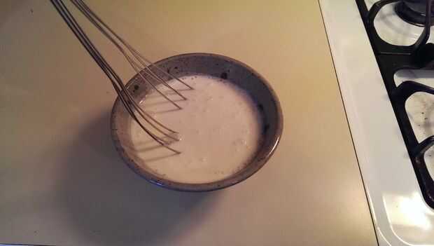 - Añadir 1/3 taza de arranque y bate para formar una mezcla.