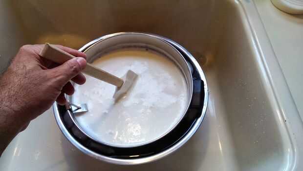 - Enfriar la leche en un baño de hielo a 125 grados F revolviendo regularmente para acelerar el proceso.