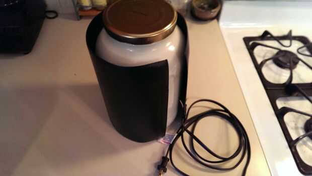 Hay muchas maneras de lograrlo. Coloca el frasco en una estufa con una luz piloto, o detrás de una estufa de madera caliente. Tengo un amigo que utiliza agua caliente en una nevera de camping cubierta y sobre todo, se sumerge el frasco durante varias horas. Puede utilizar una almohada con una toalla sobre ella, poner la jarra en y cubrir todo con una olla grande. Otra técnica utiliza una olla. Tengo una combinación de una planta eléctrica calefacción mat y un controlador de temperatura digital. Esto guarda el frasco en un constante 108 grados F hasta que lo apago.