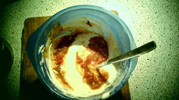 Añadir entonces el tomate (refrescado abajo) salsa a él.