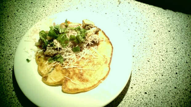 Como usted sabe, usted puede poner un montón de cosas sobre panqueques, tocino, tomates frescos, queso...