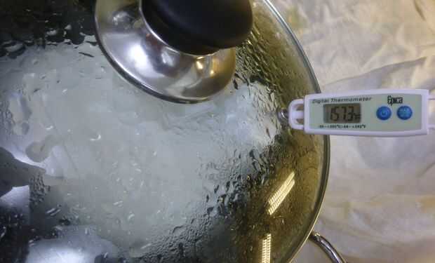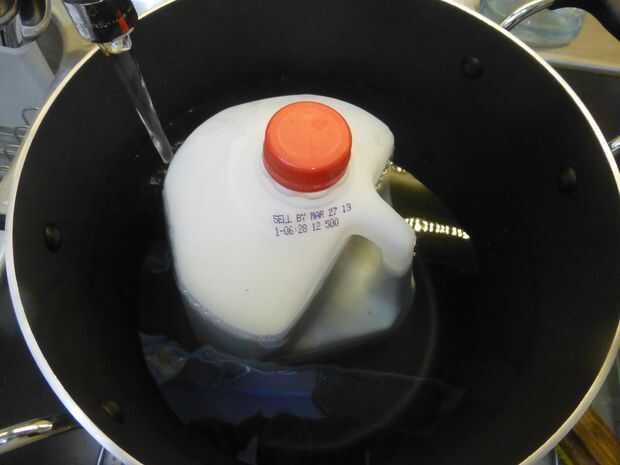 Es difícil encontrar el barco perfecto para esto, pero realmente no importa el yogur. La mía es una olla de aluminio de 12 cuartos, más de 10 pulgadas de altos interior, con una tapa de vidrio que tiene un agujero de ventilación. Ahorra tiempo y el calor. Usted puede hacer esto en una olla de 3 cuartos abiertos para un funcionamiento de ensayo, pero es más problemas.