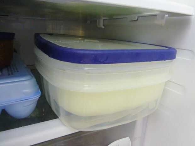 Pero hay una cosa: quiero ahorrar algo de cada lote para inocular la siguiente. Así que el último onzas pocos fuera de la jarra en un tarro. Os dejo este arranque sin tocar durante la semana en la nevera.