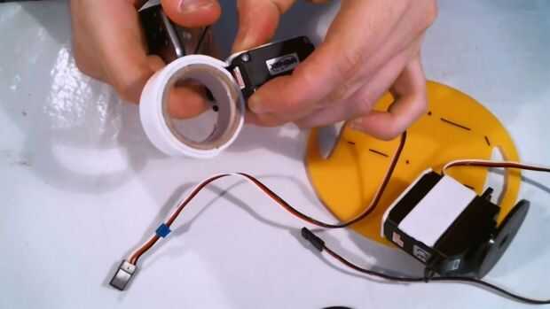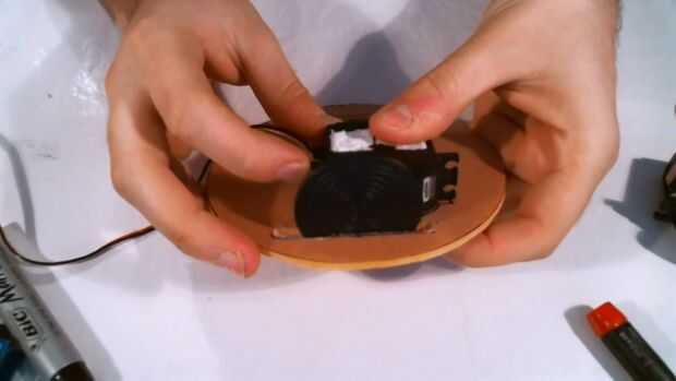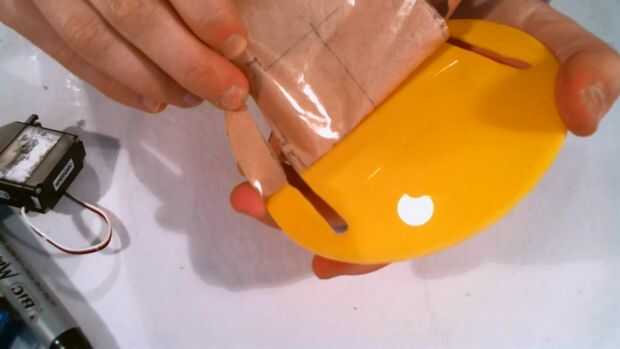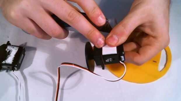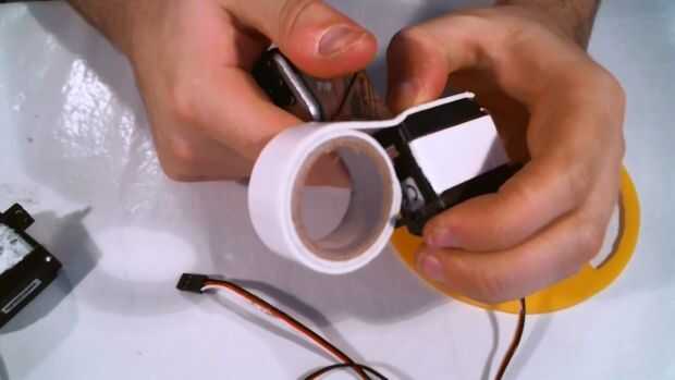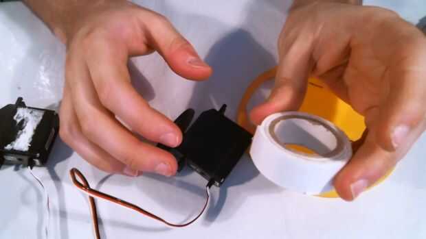 Coloque una tira de cinta de espuma doble cara en el lado del servo, se utilizará para conectar a la base.