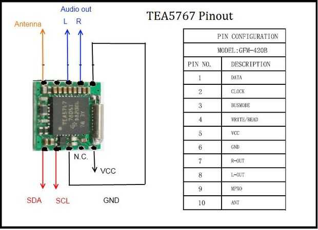 TEA5767 es un chip de FM Radio de Philips. Trabaja en protocolo de I2C o TWI (interfaz de dos hilos).