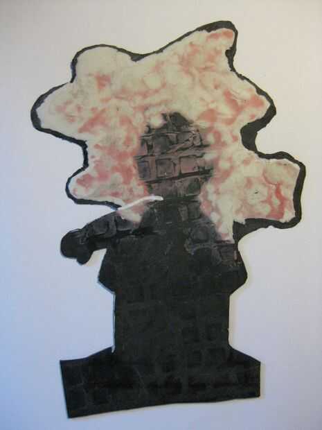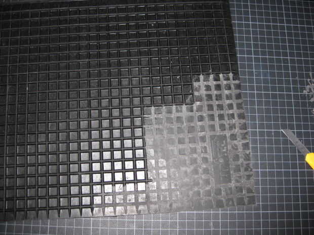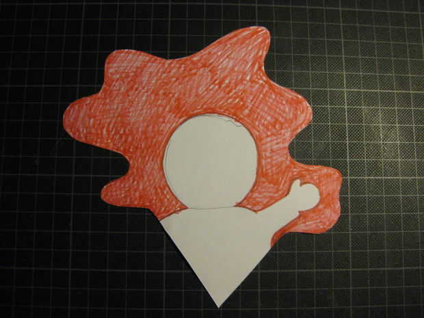 No pude encontrar una alfombra sin una estructura, así que tuve que cortar, con cúter. Puede hacer una plantilla con papel o cortar el contorno libre. Si usted no quiere hacer sugru rojo saltar el siguiente paso, cubra la estera con una fina capa de Apoxie esculpir y pintar la mancha de sangre roja.