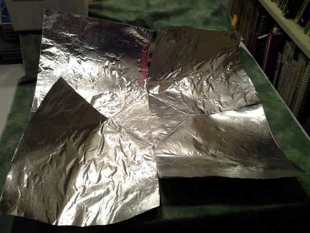 Hacer 4 capas de cartulina blanca en 4 capas de cartulina rojo en cuadrados de 6" y 6" plazas.