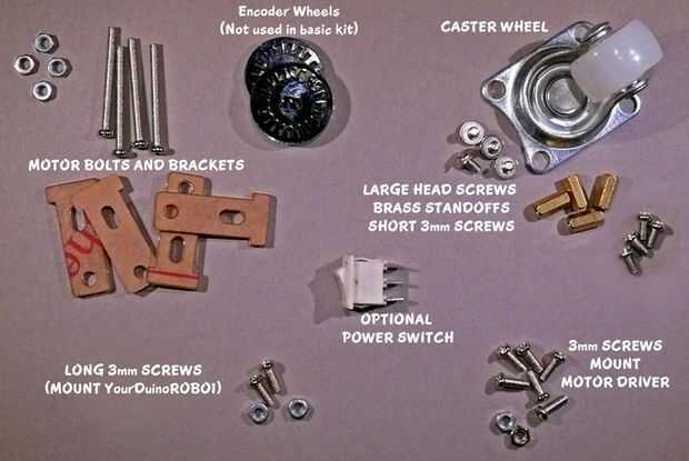 • Discos de codificador (2) no utilizan en este kit. Estos pueden utilizarse con el software más complejo para medir la rotación de la rueda.