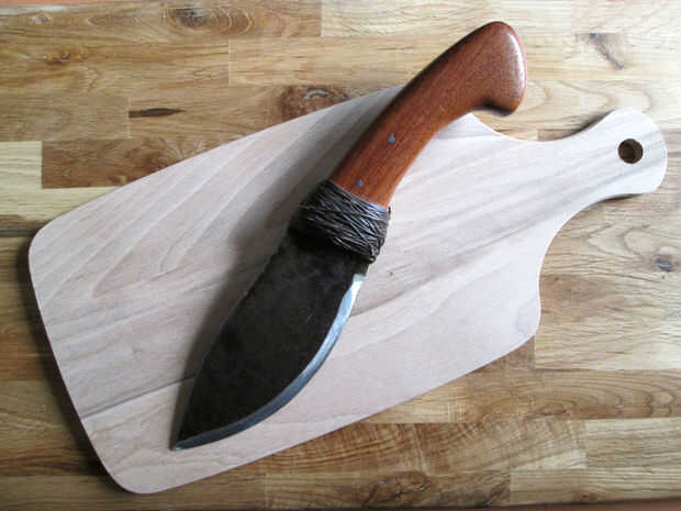 Sacrificar a uno de mis diseños de cuchillo anteriores sonaba como una gran idea, ya que estaba hecha de un vieja hacha de carniceros alta calidad.