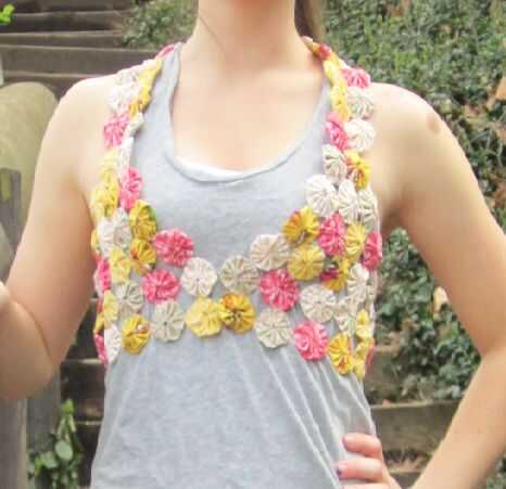 un par de años estaba paseando por un mercado de agricultores con mi papá y vi un tejido hecho de Yo-Yos. Era ridículamente caro y cuando miré, pensé, "yo podría hacer este yo mismo." Desde entonces siempre he querido hacer una colcha como la que vi pero nunca pudo encontrar el tiempo para probar. Después de ver el concurso de acolchar era la oportunidad perfecta para poder probar mi mano en la fabricación de Yo-Yos. Después de ver el primer par de entradas decidí que tenía que pensar en algo más creativo para hacer con Yo-Yos, el resultado es un chaleco.