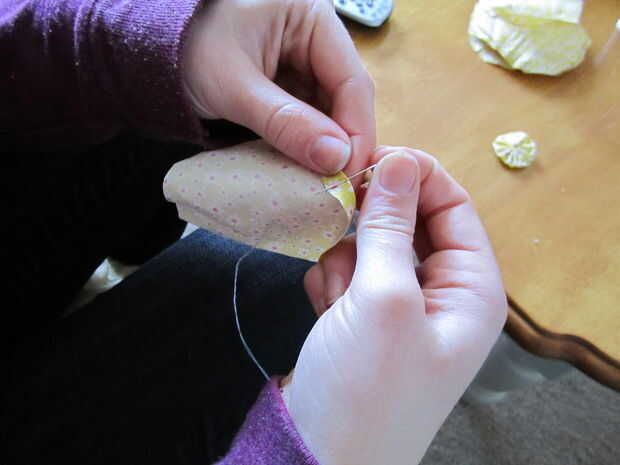 Este proceso de repetición puede tomar mucho tiempo. Mi chaleco está hecho de Yo-Yos individuales 121 cosidos juntos. Si usted está haciendo un chaleco más grande que la mía este número será mayor, a menos que utilice círculos más grandes.