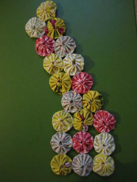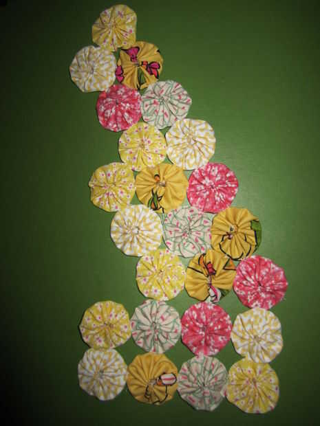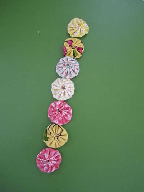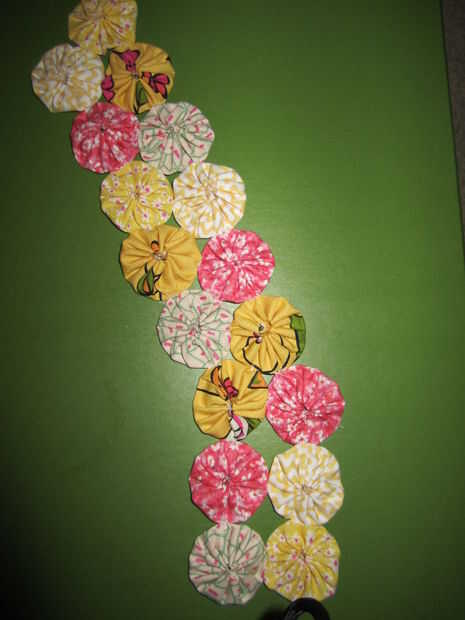 Importante: Cuando yo-yos juntos es más fácil pegarlas una por una. Traté de acelerar el proceso de largas líneas de costura de ellos juntos y luego conectar pero esto tomó más tiempo y no encajan entre sí además de hacerlo de la manera lenta!